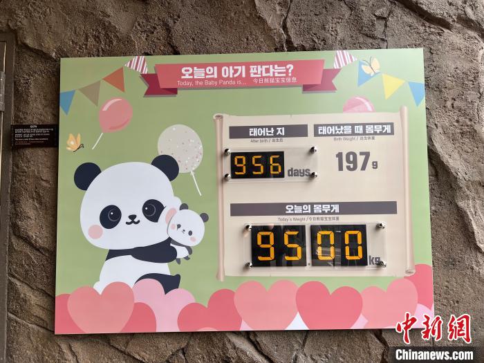 資料圖:愛寶樂園熊貓世界內展示“福寶”當日體重的信息牌。中新網記者 劉旭 攝