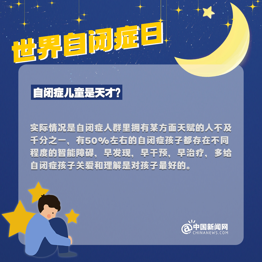 中新網4月2日電 自閉癥兒童,也被稱為“來自星星的孩子”,他們的情緒難以捉摸,他們的思想難以表達,他們像星星一樣孤獨地游離在宇宙中……有數據顯示:目前中國自閉癥患者已超1300萬人。自閉癥有哪些認知誤區?該如何早期識別自閉癥?詳情↓關愛自閉癥患者,讓星星的孩子有愛不孤單!