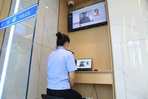 “鹽之e警”窗口民警為群眾遠程辦理業務。鹽城市公安局供圖