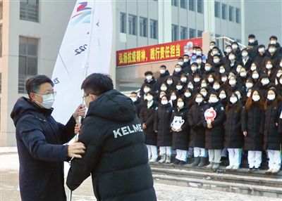 1月23日早7時許,河北工業大學舉行冬奧志愿者出征儀式,227名師生志愿者在國旗下莊嚴宣誓:“志愿青春,冬奧有我!”
