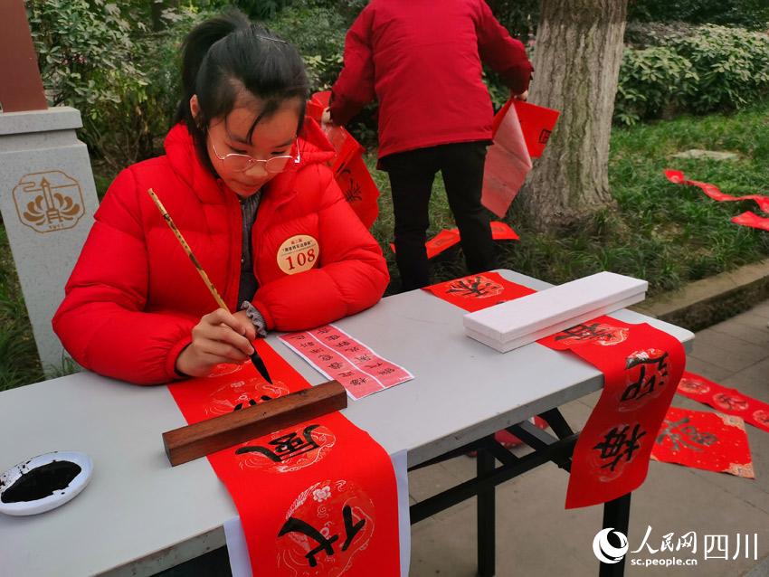 紅衣添喜慶,黑墨伴梅香。人民網 劉海天攝