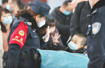春運期間,山西鐵路執勤民警堅守崗位,認真履責,加強客流疏導,熱情服務旅客,確保春運平穩有序。圖為臨汾鐵路公安處民警在護送一名小旅客進站后,小旅客向民警揮手告別:“阿姨,再見!”