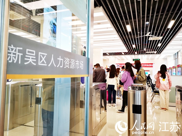 在無(wú)錫市新吳區(qū)人力資源市場(chǎng),不少年輕人前來(lái)咨詢就業(yè)落戶事宜。儲(chǔ)霞攝