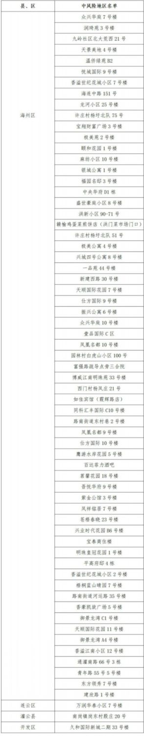 連云港市66個中風險地區詳細名單(2022年3月11日)