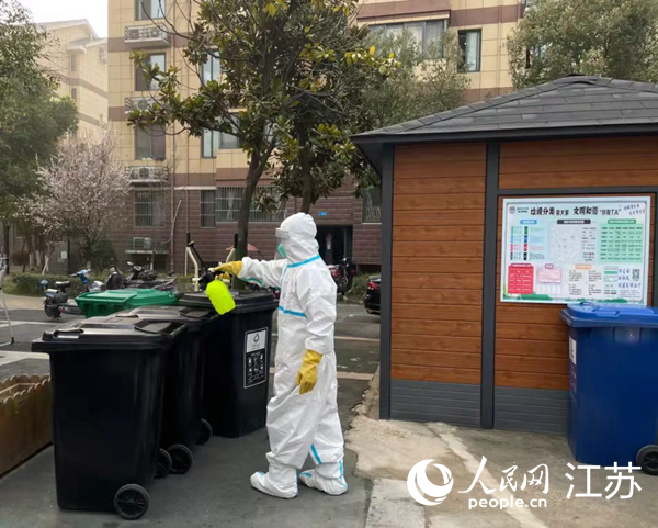 趙必柱對垃圾桶進行消殺。江融宣攝