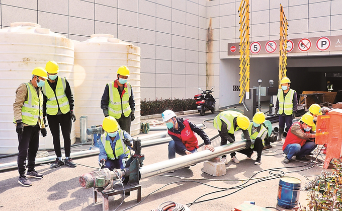 南京一疫情隔離點開展污水處理系統安裝工作。 通訊員 李天心 本報記者 范俊彥 攝