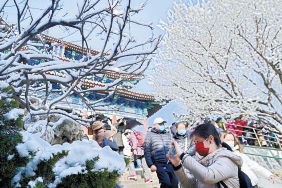 北京市公園管理中心也發出提示:雪后游園注意安全,春游勿忘防疫,觀花賞雪保持距離,請市民游客入園測溫掃碼,文明游園、錯峰踏青。