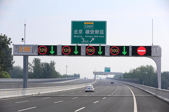 從2018年2月津石高速公路打響雄安新區對外骨干路網建設的第一槍,到2021年5月京雄、榮烏新線、京德高速一期工程和容易、安大線建成投用,以京港澳、京雄、大廣、京德為“四縱”,以榮烏新線、津雄、津石為“三橫”的高速公路網基本建成。