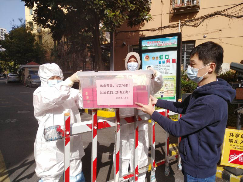 人民網上海3月31日電 (唐小麗、馬作鵬)“這些避疫香囊是我的一點心意?!?月30日下午,高晴將她自制的100多只避疫香囊,轉送給虹口區曲陽路街道赤峰二小區正在抗疫的志愿者們。