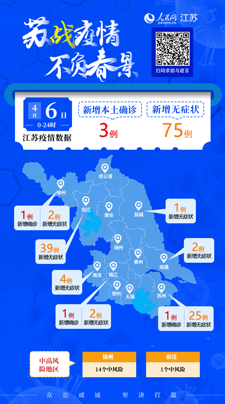 4月6日江蘇新增本土確診病例3例 本土無癥狀感染者75例