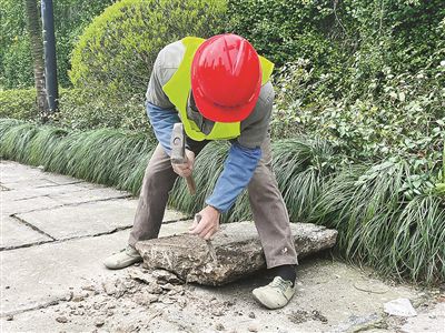 “我們秉持‘最小干預’的原則——結構層穩定的老石板,原則上不修;需要修繕的老石板,則嚴格遵守‘修舊如舊、保留肌理’的原則。”杭州園林設計院股份有限公司相關負責人介紹,“一般兩種情況下才進行修復,一是樹池周邊起拱、松動嚴重,二是老石板破損、松動嚴重。”
