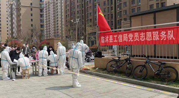 3月31日臨沭縣發現無癥狀感染者病例后,縣工信局聞令而動,迅速組織人員集結奔赴幫包網格小區,當日協助開展全員核酸檢測3550余人次,隨后又完成封控區上門核酸檢測、執勤區域搭建、特殊群體人員排查、夜間值守等工作。 同時招募社區志愿者協助封控區居民每日運送生活物資、生活垃圾1000余份。在與疫情戰斗的十多天中,圓滿完成幫包小區管控區全員核酸檢測2.45萬人次,封控區全員核酸檢測3541人次,出入口24小時值守等各項工作任務,筑牢疫情防控“銅墻鐵壁”。