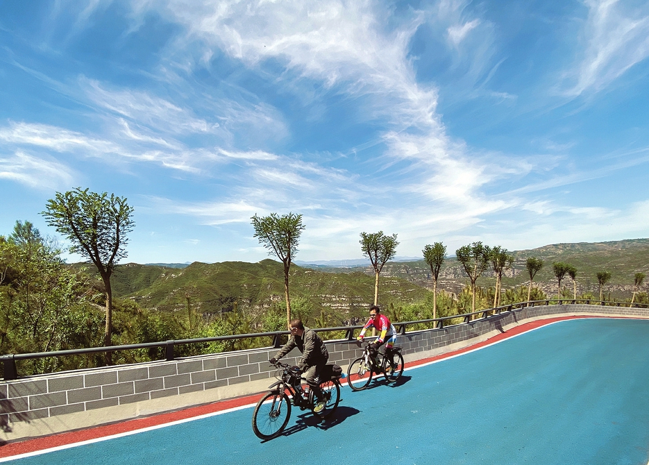 5月5日,騎行愛好者精神煥發地騎行在太原西山自行車賽道上。自太原市環城公路自行車賽道建成以來,這條高標準公路就成為眾多騎行愛好者的健身“長廊”,并帶動越來越多的人加入到綠色健身的隊伍。(記者李兆民攝)