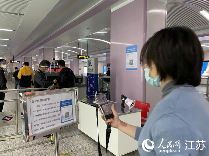 蘇州市民掃描場(chǎng)所碼進(jìn)站。人民網(wǎng)記者 王繼亮攝