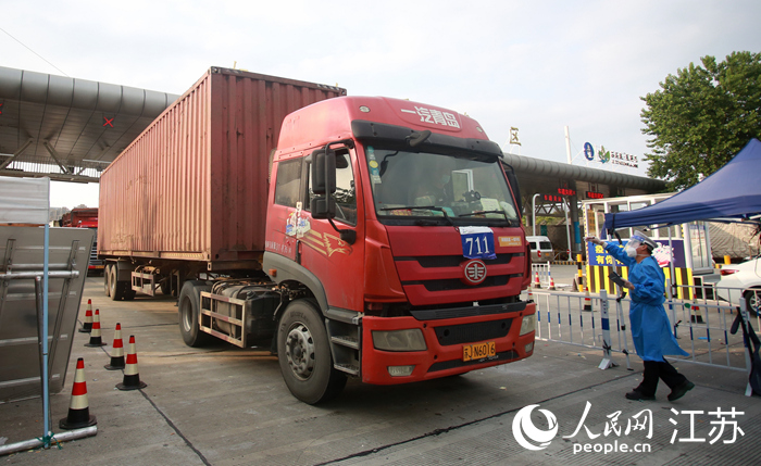 貨車有序通過(guò)揚(yáng)州卡口。人民網(wǎng) 張玉峰攝