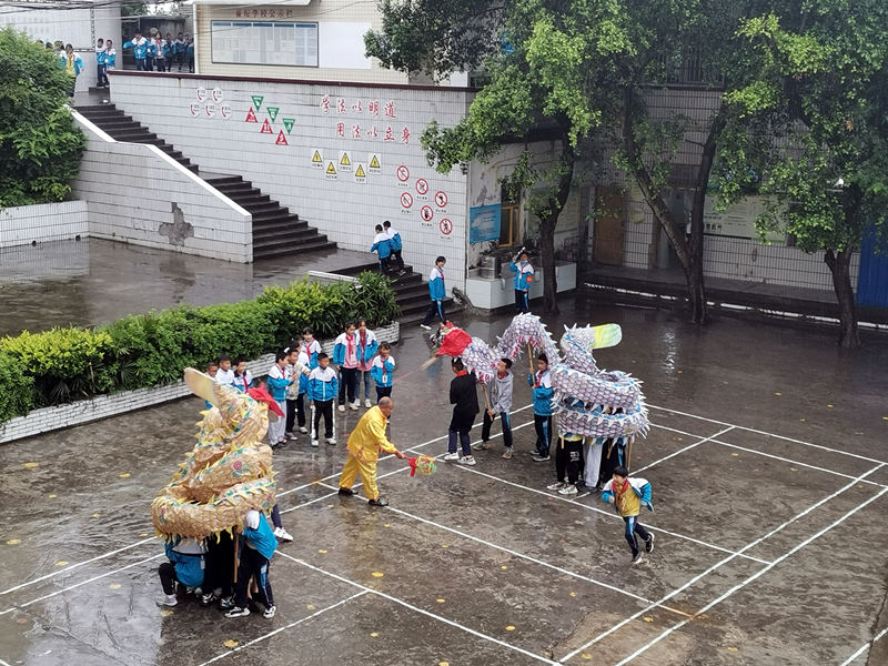 “我先是向師生傳授舞龍技藝基本動作,然后再選擇50個娃娃組建學生舞龍隊,再系統培訓舞龍。”羅德書說,從基本動作開始,再到套路訓練、樂器訓練,到了期末,基本就能進行一個完整的表演了。