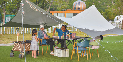 “三五好友結伴而行,喝茶賞景,好不愜意?!背虝哉f,“現在市場上有很多比較成熟的露營產品可選擇,有的只提供帳篷等設備,需要自備餐食,有的是全包,吃住游所需都準備好了,還有些個性化的產品會提供桌游、羽毛球等休閑項目。”在體驗過幾次露營后,程曉正打算帶上父母一起戶外郊游。