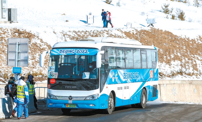 服務于北京冬奧會張家口賽區的福田汽車氫燃料電池客車。本報記者 潘之望攝