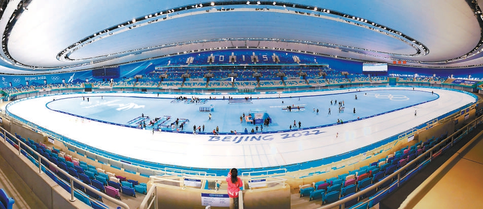 國家速滑館日前暖心邀請場館建設者代表及家屬“回家看看”,共享冬奧榮光。場館方面介紹,“冰絲帶”計劃“五一”前向社會開放。薛皓琪攝