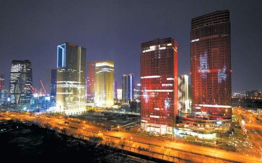 夜幕漸漸籠罩了高樓林立的麗澤金融商務區,剎那間一幢幢高樓都“活”了起來,流光溢彩上演一場夜景燈光秀。北京麗澤金融商務區景觀照明提升工程日前完工正式亮燈,為夜京城增添了活力和色彩。