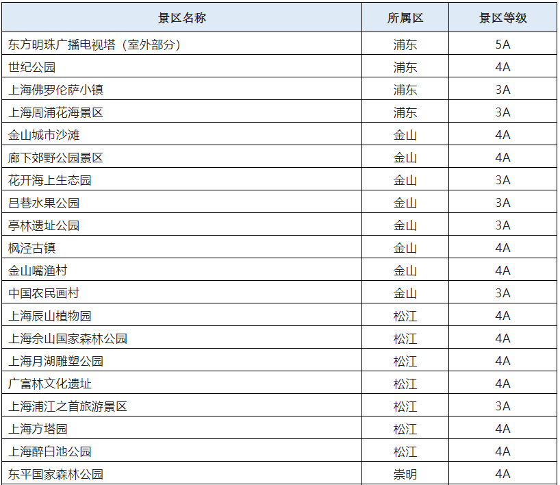 恢復開放的32家A級旅游景區(圖片來自上海市文旅局,央廣網發)