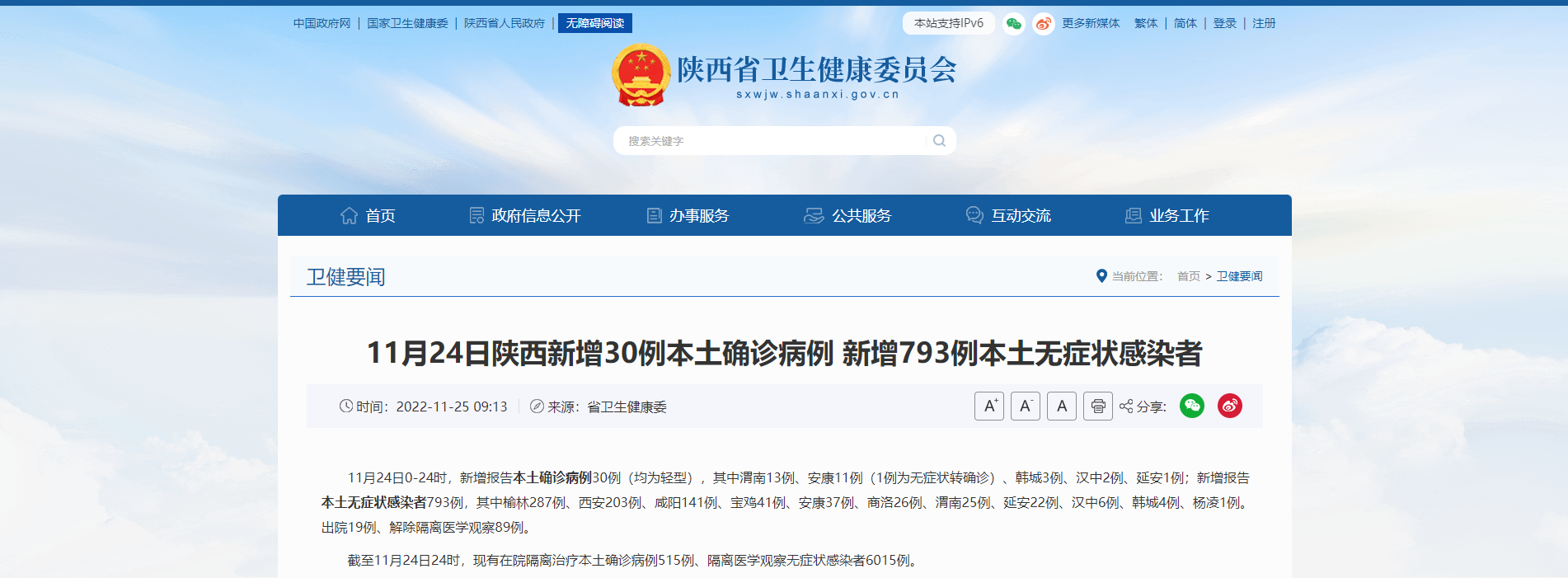 陜西疫情最新通報(央廣網發 陜西省衛生健康委官網截圖)