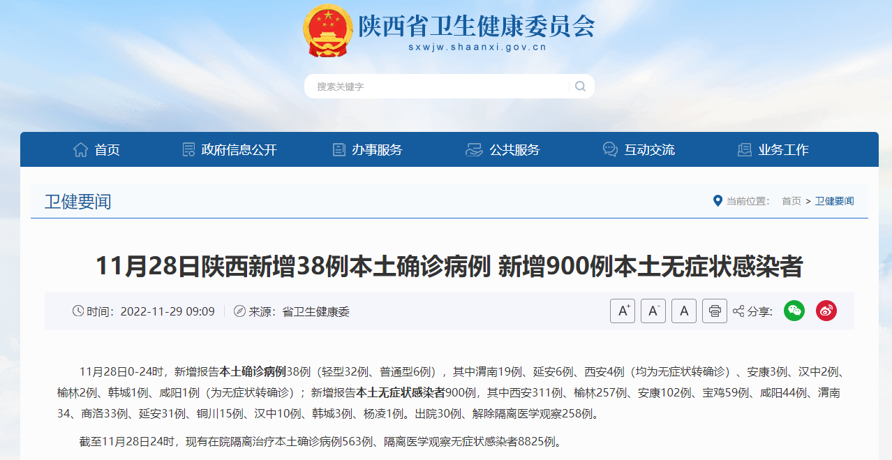 陜西疫情最新通報(央廣網發 陜西省衛生健康委員會官網截圖)