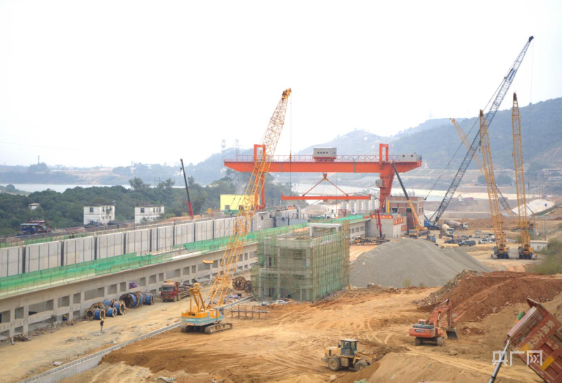 西津水利樞紐二線船閘工程建設正緊鑼密鼓進行中(央廣網發 蔡俊聰 攝)