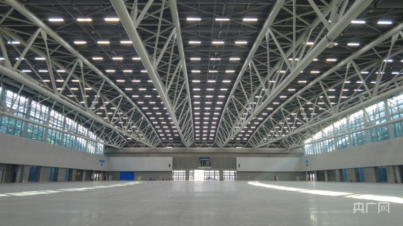 廣交會D區二層為4個面積為12000㎡的展廳,凈高度為18~21米(央廣網記者 夏燕 攝)