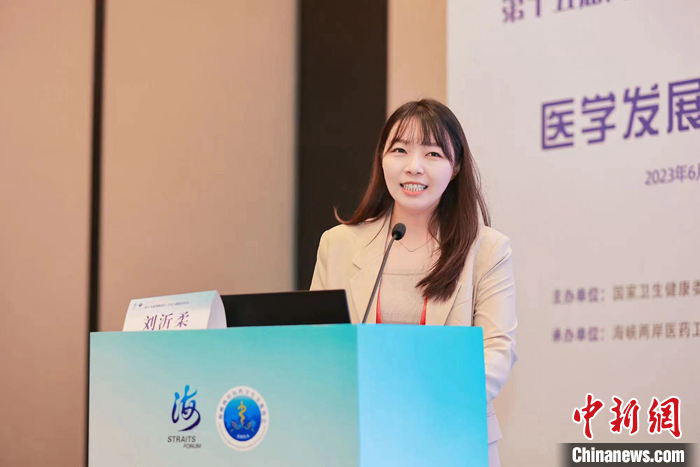 圖為劉沂柔在第十五屆海峽論壇“衛生與健康分論壇”發言。 中新社發 受訪者供圖