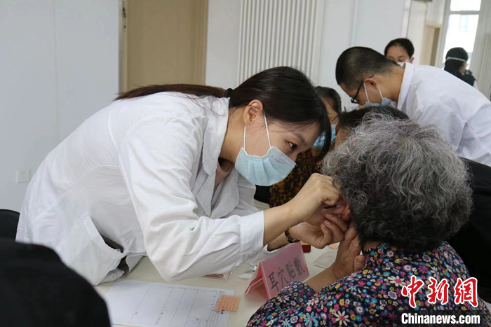 圖為6月3日,劉沂柔在北京市朝陽區參加社區義診活動。 中新社發 受訪者供圖
