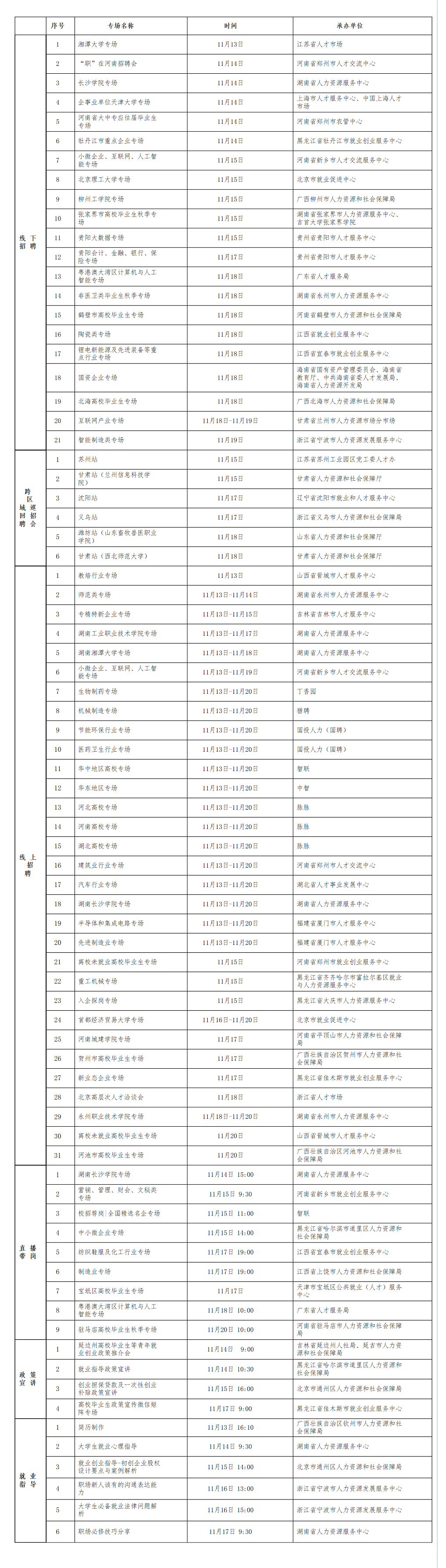 央廣網北京11月15日消息(記者 馮儀)人力資源和社會保障部2023年大中城市聯合招聘高校畢業(yè)生秋季專場活動近期將推出第四批共77場特色服務活動。包括智能制造類、互聯網產業(yè)、陶瓷類等21場線下專場招聘會,6場跨區(qū)域巡回招聘會,教培行業(yè)、生物制藥、機械制造等31場線上專場招聘會,9場直播帶崗活動,4場政策宣講直播(錄播)課以及6場就業(yè)指導直播(錄播)課。