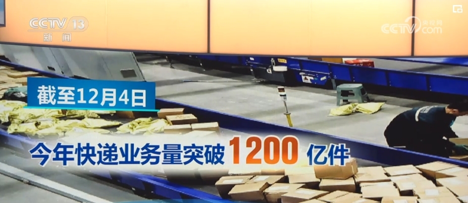 國家郵政局12月5日發布數據,截至12月4日,我國2023年快遞業務量突破1200億件,創歷史新高。從2021年以來,我國快遞年業務量連續3年突破1000億件,展示出中國消費市場持續向好的良好態勢。
