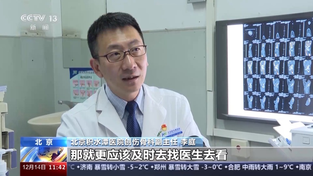 北京積水潭醫院創傷骨科副主任 李庭:下雪之后往往是以滑倒摔傷這種造成的損傷為主,我們第一位的就是橈骨遠端骨折,需要打石膏的,就已經錯位了。