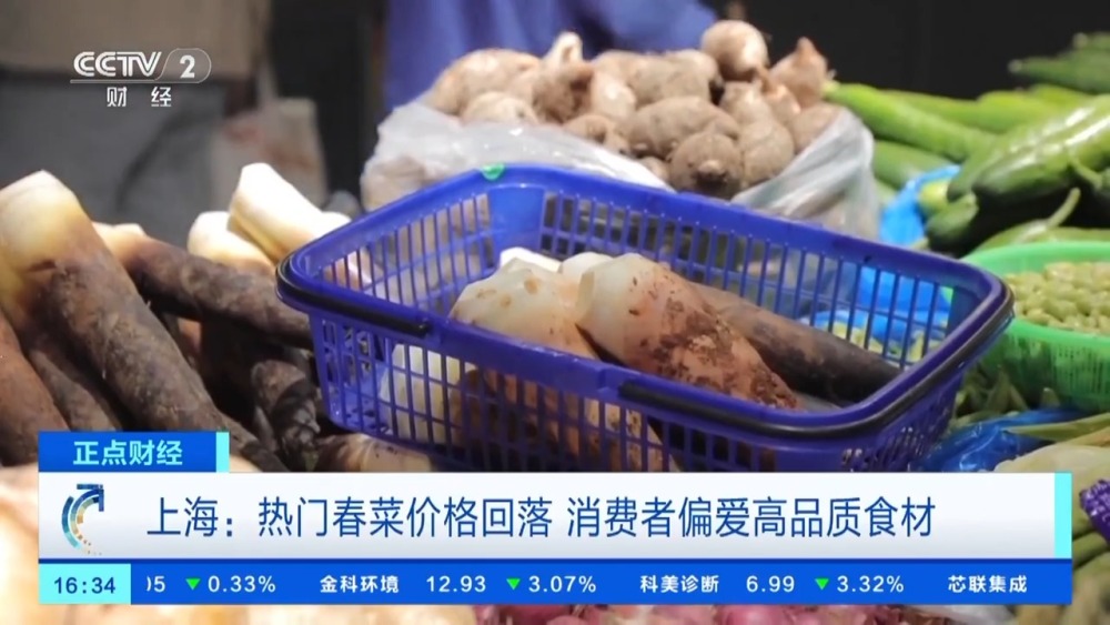 上海市普陀區(qū)某生鮮門店經(jīng)理 黃春麗:春筍價格也降下來了,每斤五六元,便宜的時候每斤三四元。蠶豆現(xiàn)在是每斤五元,剛上市的時候能賣到每斤六七元,現(xiàn)在價格比較實惠。