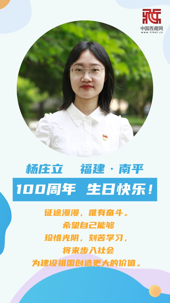 100年前,中國共產(chǎn)黨為苦難深重的中華民族帶來了光明與希望,100年后,中國人民在中國共產(chǎn)黨的帶領下,看到了中華民族偉大復興的曙光。在中國共產(chǎn)黨成立100周年之際,一起聆聽新時代青年學子送上的祝福!(制作/許娜 編輯/澤仁措姆)