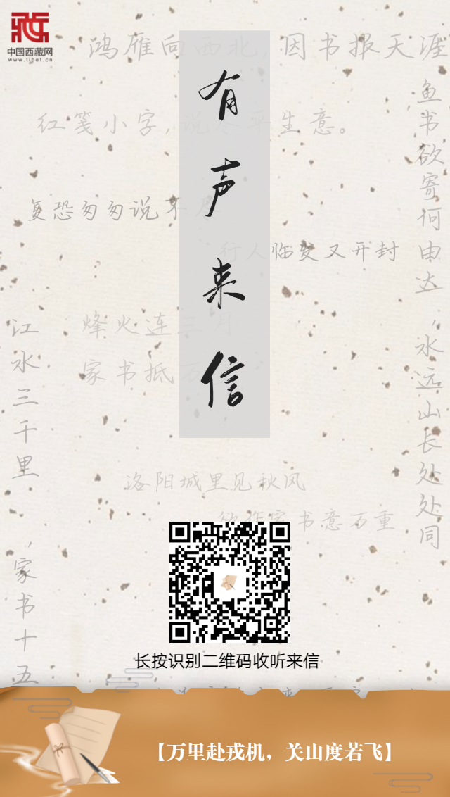 【編者按】穿越歲月長(zhǎng)河,翻開(kāi)一封封紅色家書(shū),感受筆端下的家國(guó)情懷和人間煙火。一紙書(shū)信明志向,一紙書(shū)信道親情,家書(shū)中浸透著硝煙與血汗,澎湃著奮斗與信仰,在中國(guó)共產(chǎn)黨成立100周年之際,中國(guó)西藏網(wǎng)推出融媒體產(chǎn)品[有聲來(lái)信],從紙短情長(zhǎng)中重溫波瀾壯闊的歷史,感悟革命先輩的心路情懷。本期內(nèi)容為:萬(wàn)里赴戎機(jī),關(guān)山度若飛