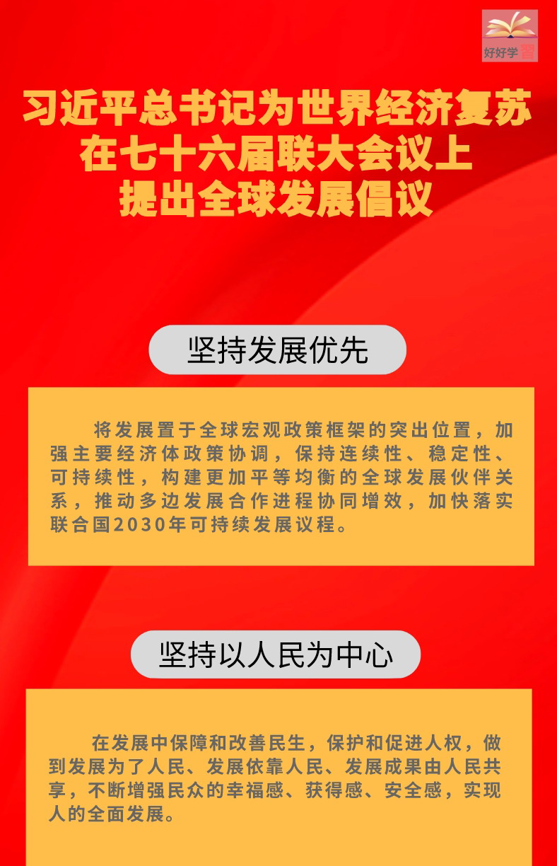 長圖|習近平總書記為世界經濟復蘇在七十六屆聯大會議上提出全球發展倡議