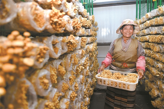 來這里工作之前,多布杰靠務農和打零工為生,年收入不足萬元。現在,從前期的菌類種植到后期管理、出菇、裝包、接種等,多布杰都能全流程、獨立完成,月收入近4000元。他欣喜地告訴記者:“我現在掌握食用菌種植技術,依靠這項技術,以后的收入會不斷提高,日子越來越好。”
