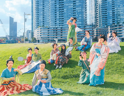 墨爾本大學學生劉心如是漢服社設計部部長,她從小成長在“漢服之家”。劉心如說:“小時候,我跟隨媽媽參加過很多漢服愛好者的活動,那時大家身穿漢服,一起度過傳統節日,在我看來漢服不只是漂亮的衣服,還是文化瑰寶。我還學過中國畫、古典舞、古箏,發自內心熱愛中國傳統藝術和文化。”