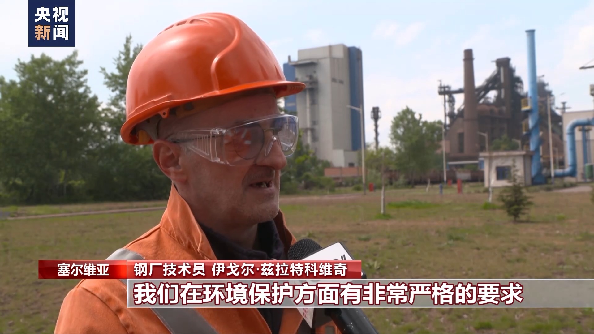 鋼廠技術員 伊戈爾·茲拉特科維奇:我們在環境保護方面有非常嚴格的要求,例如,法律規定粉塵排放標準是50毫克每標準立方米,而我們鋼廠的粉塵排放量約為5毫克;法律規定二氧化硫排放量是150毫克每標準立方米,而我們能做到只有2到3毫克。坦率地說,我非常感謝我們的中國同事,他們為我們指明了道路。