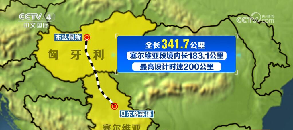 匈塞鐵路起自塞爾維亞首都貝爾格萊德,終至匈牙利首都布達(dá)佩斯,全長341.7公里。其中,塞爾維亞段境內(nèi)長183.1公里,最高設(shè)計(jì)時(shí)速200公里。