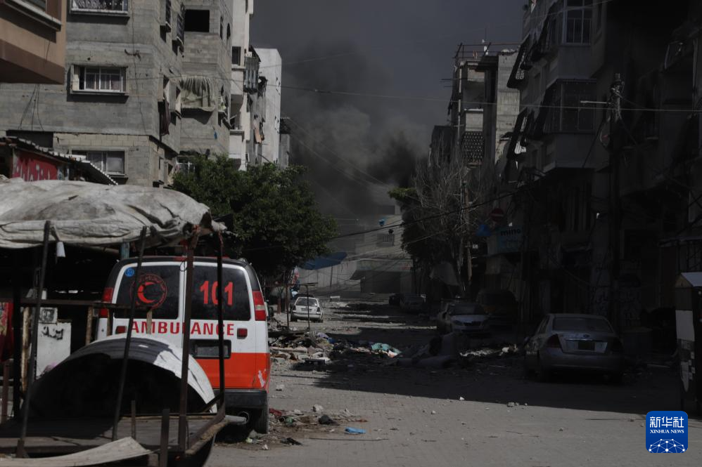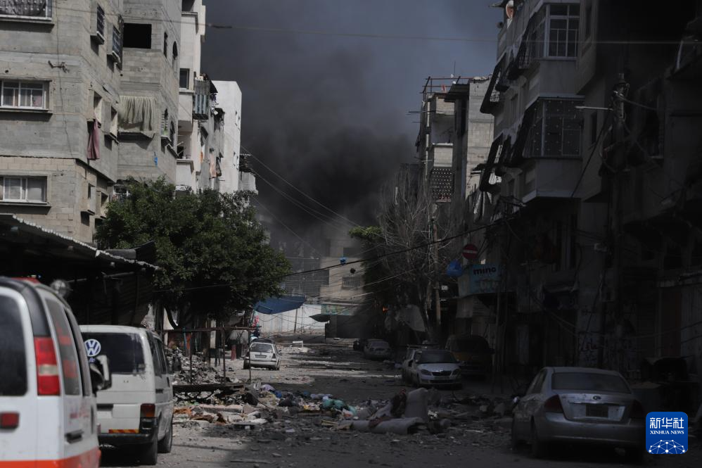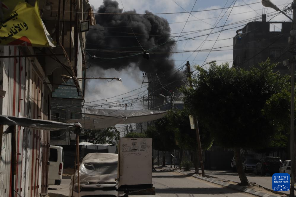 5月13日,在加沙地帶北部杰巴利耶難民營,以軍轟炸后升起濃煙。新華社發(阿卜杜勒拉赫曼·薩拉馬攝)