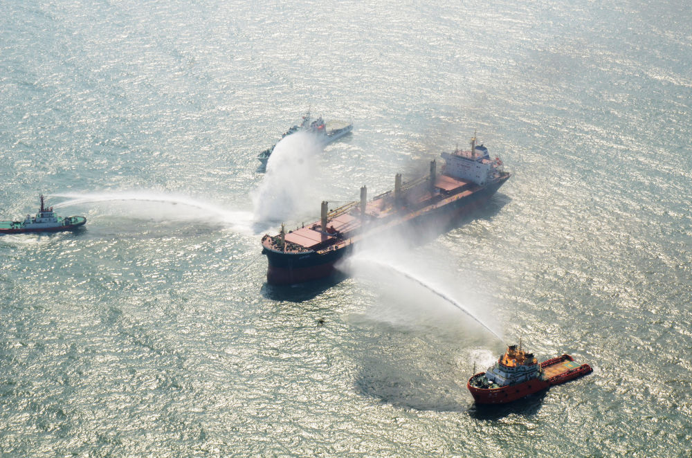 2017年10月31日,中國-東盟國家海上聯合搜救實船演練在廣東湛江海域舉行。該演練是各方落實《南海各方行為宣言》的一次海上務實合作項目。新華社記者毛鑫攝