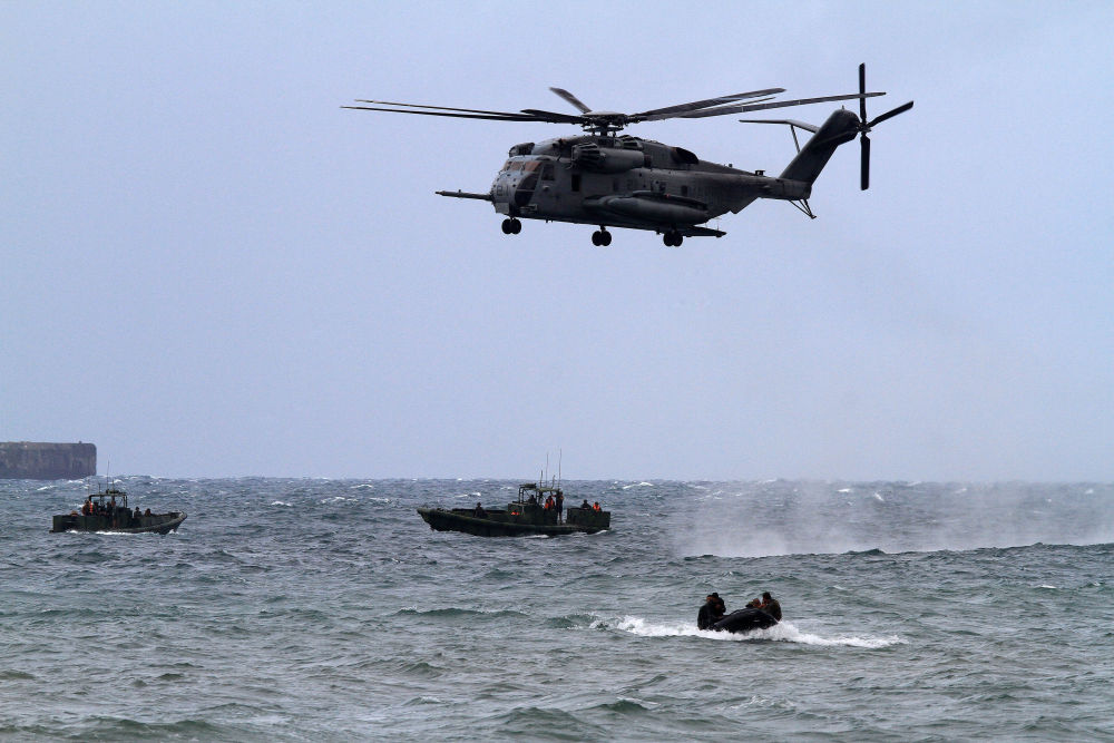 2013年9月20日,在菲律賓甲米地省,一架美軍CH-53E軍用直升機運載美國和菲律賓士兵參加演習。新華社發(魯埃勒·烏馬利攝)