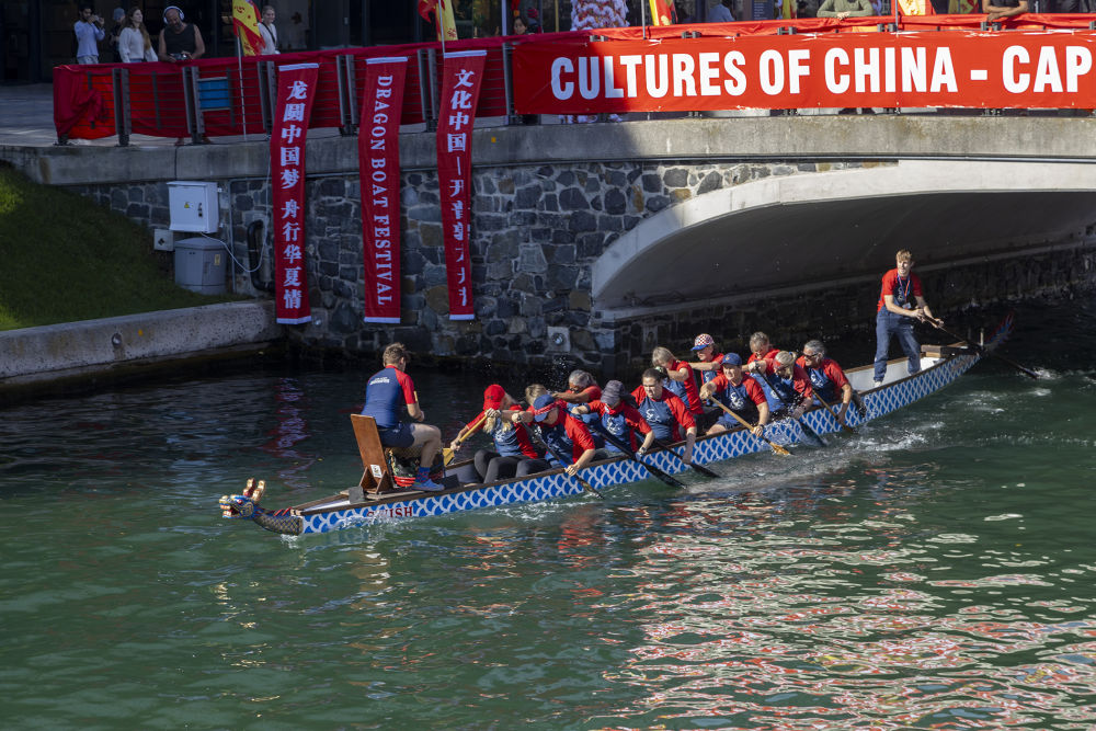 6月8日,人們在南非開普敦參加第二屆“文化中國·開普敦龍舟節”比賽。新華社記者王雷攝