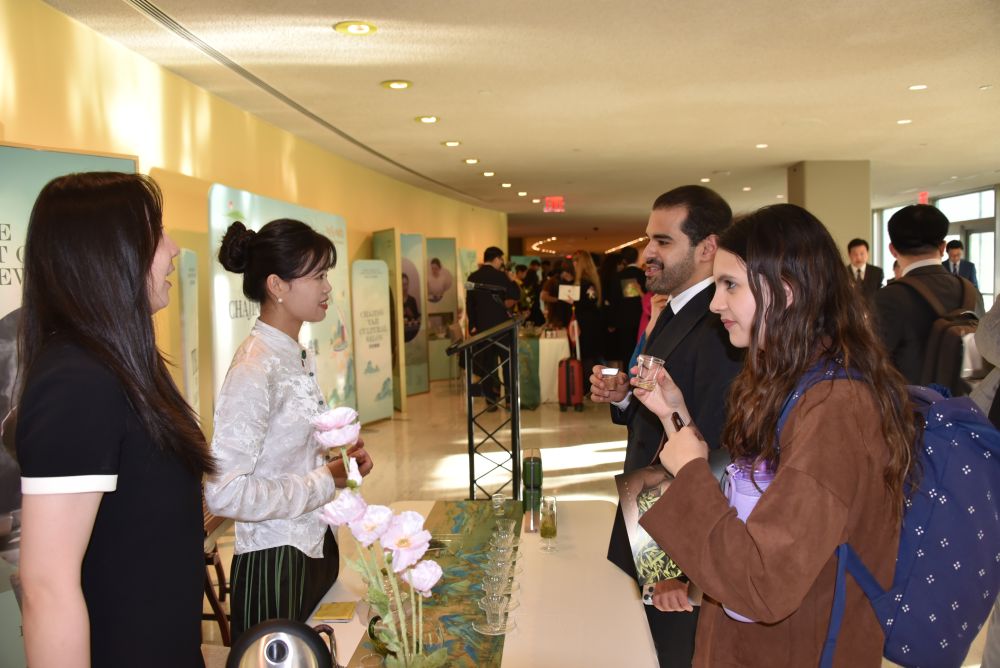 2024年5月21日,在位于紐約的聯合國總部,人們參加“茶和天下”國際茶日展示和慶祝活動。新華社記者王建剛攝
