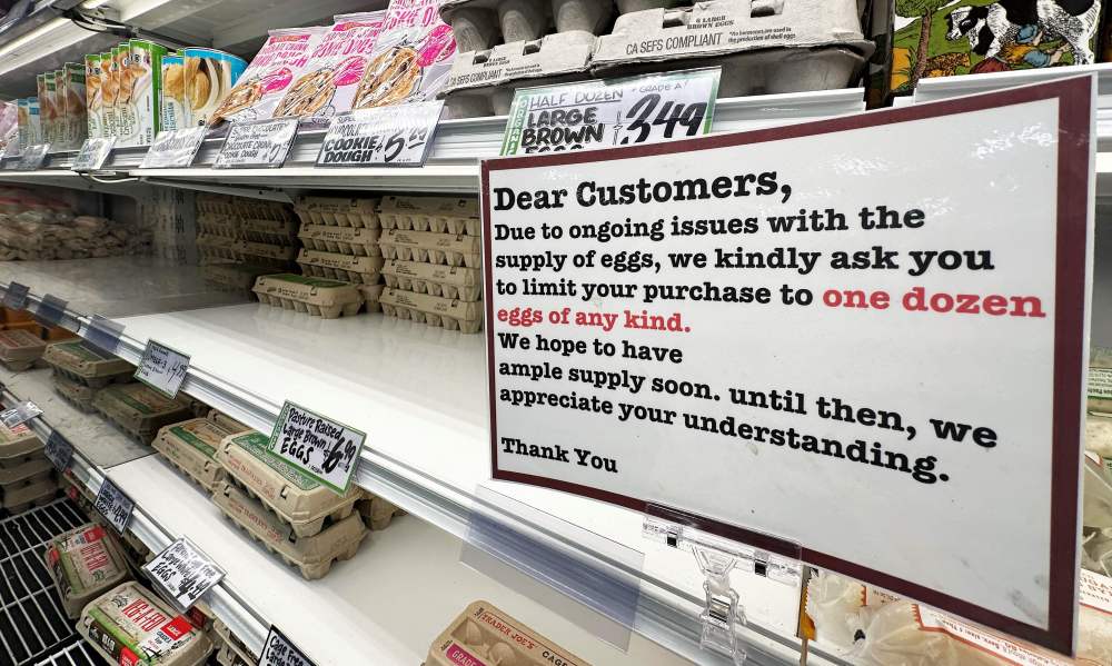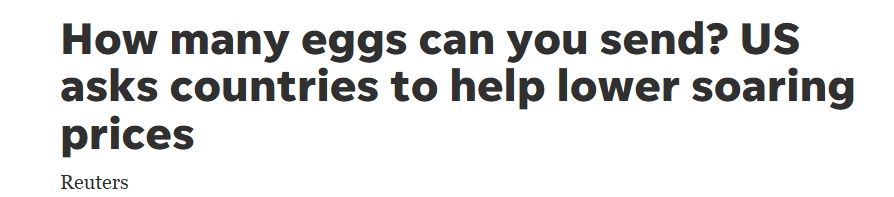 雞蛋讓美國總統特朗普傷腦筋。路透社說,特朗普先前承諾1月20日上任首日就要讓美國蛋價降下來,但執政滿一個月時,美國蛋價較去年同期上漲59%。