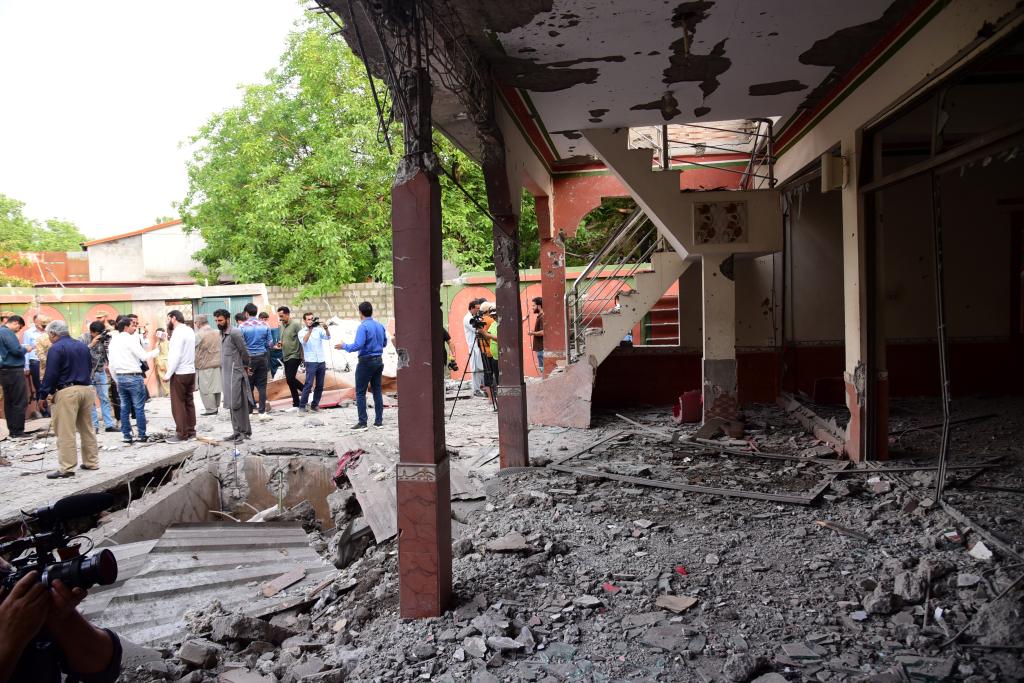 這是5月7日在巴控克什米爾地區首府穆扎法拉巴德拍攝的遭印度空襲的建筑。新華社發(穆罕默德·丁·穆加爾攝)