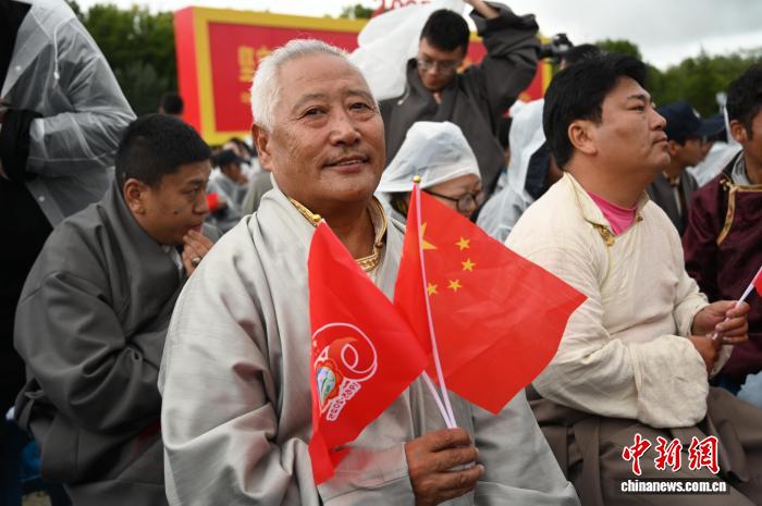 8月21日,拉薩古城居民羅桑群佩在布達拉宮廣場參加慶祝活動。中新社記者 趙朗 攝